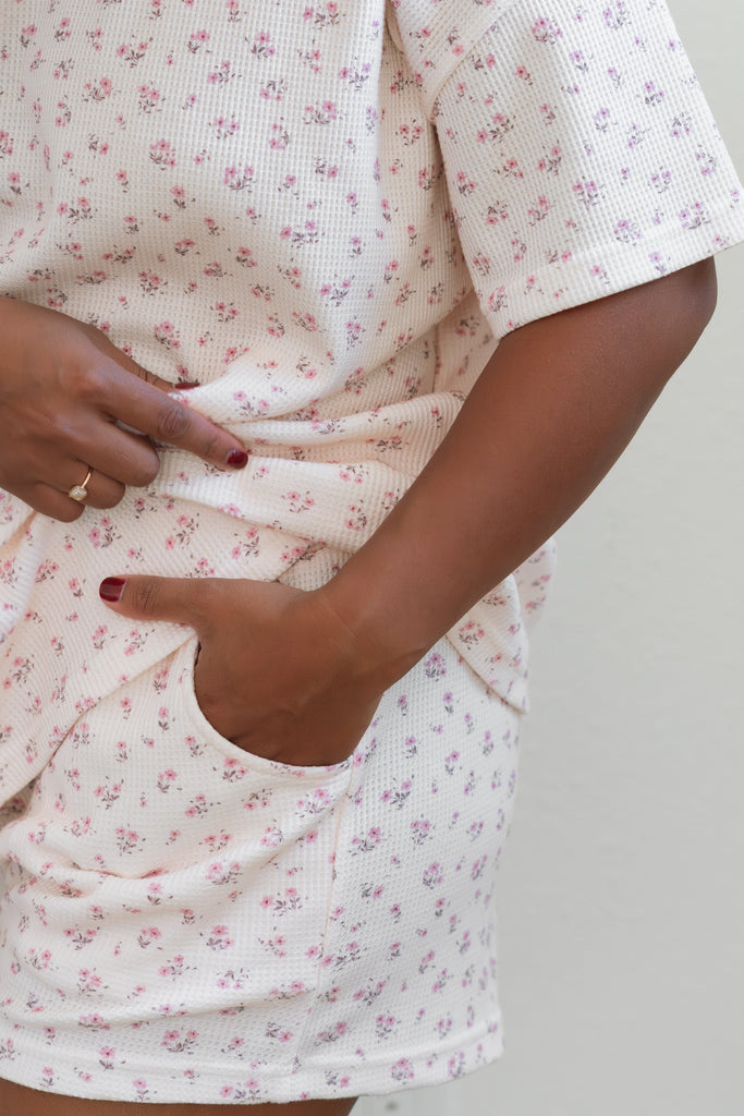 Adult Beige Ditsy Floral Waffle Everyday Set